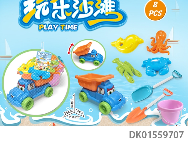 Large truck with beach accessories and buckets (8) pcs
