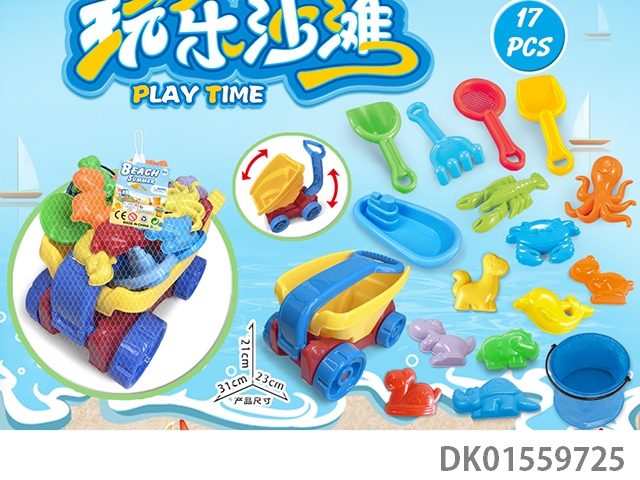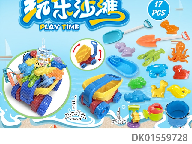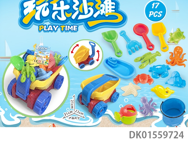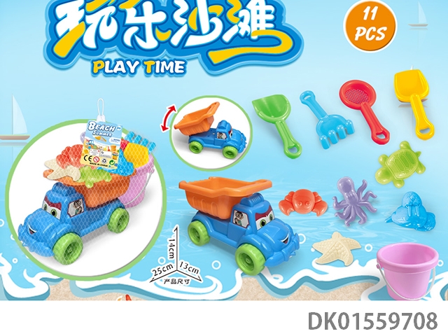 Large truck with beach accessories, folding bucket and hourglass (17) pcs