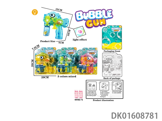 Automatic water filling inertia transparent light, big eyed fish bubble gun with 2 * 60ml bubble water (including electric AG13 * 2)