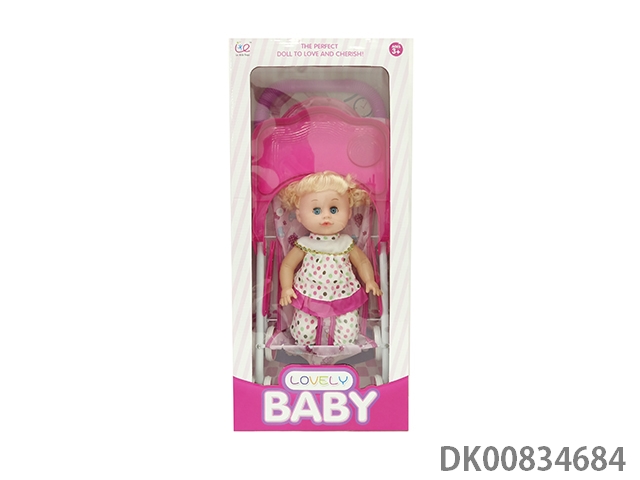 14 Inch empty body live eye girl with english ic and iron hand push dining car