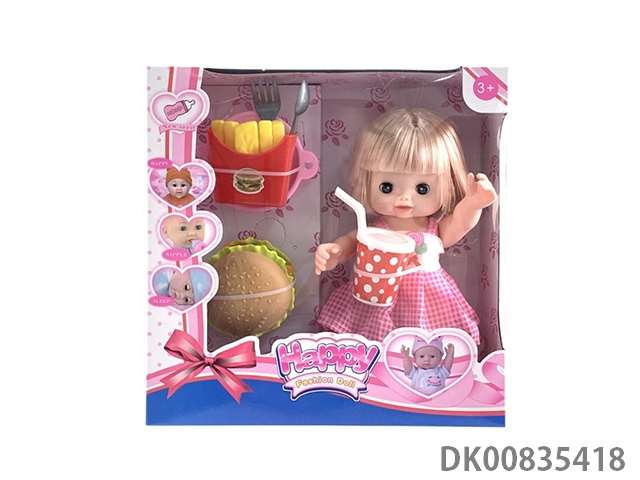 11 Inch full body enamel live eye girl with hamburger set