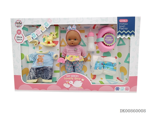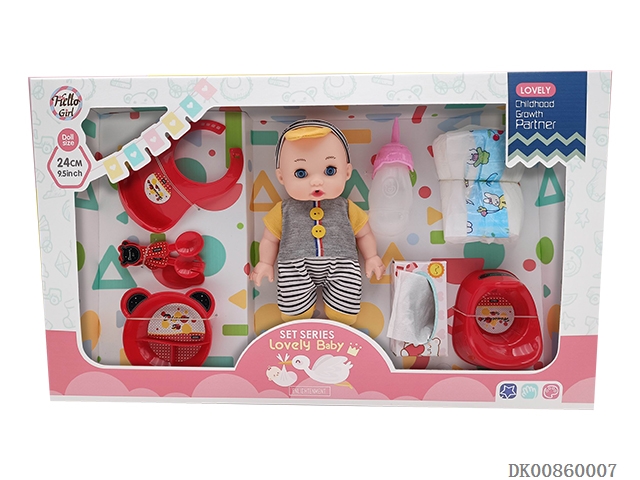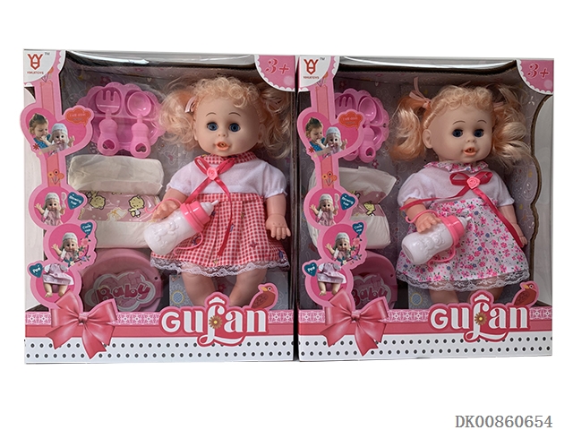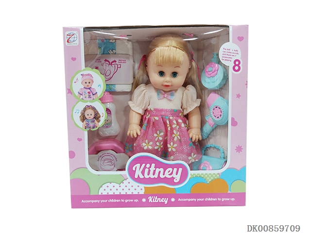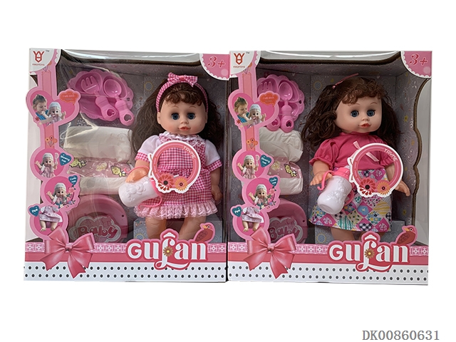 14 Inch baby girl (dinner plate, diaper, stool basin, milk bottle and light music ic)