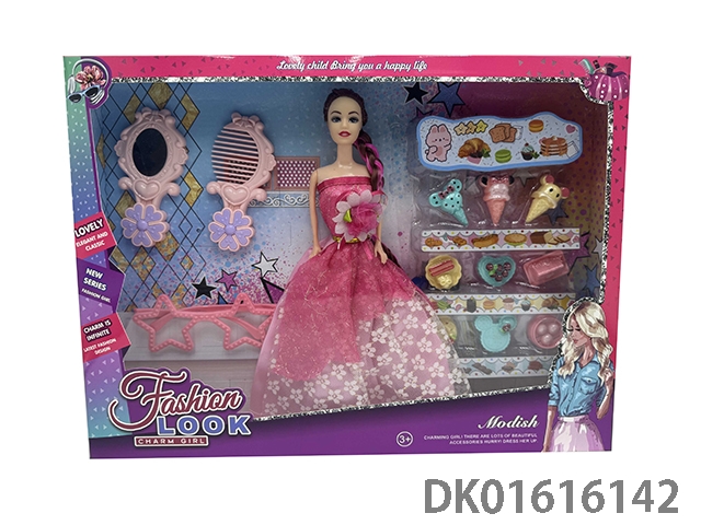 11.5 Inch solid length braided evening dress barbie doll girl with comb, mirror, glasses, and ice cream series princess doll playhouse accessory set