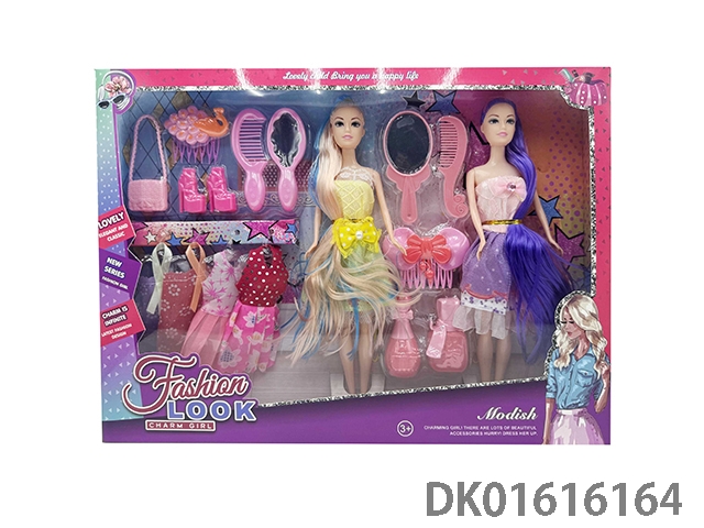 11.5-Inch thigh length ponytail fashion barbie girls sisters with clothing and combs and mirrors and hairpins and high-heeled shoes and handbags and shoes series and hair dryer and perfume bottles (fashion barbie princess dolls)