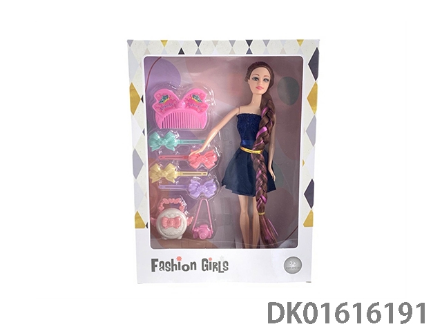11.5-Inch thigh length braided fashion barbie doll girl with hair clip series, handbag and camera (fashionable barbie princess doll)