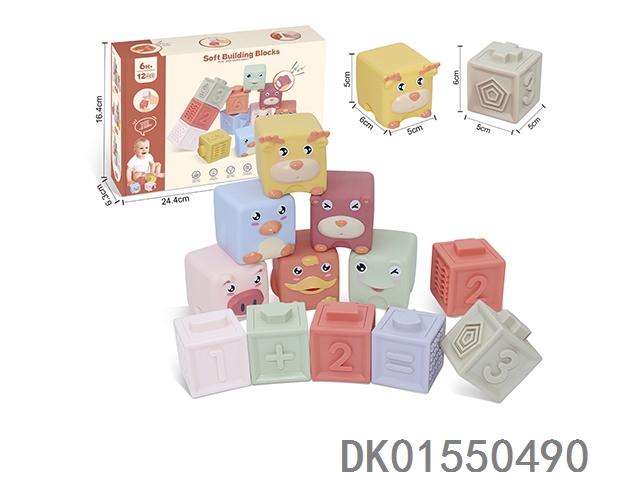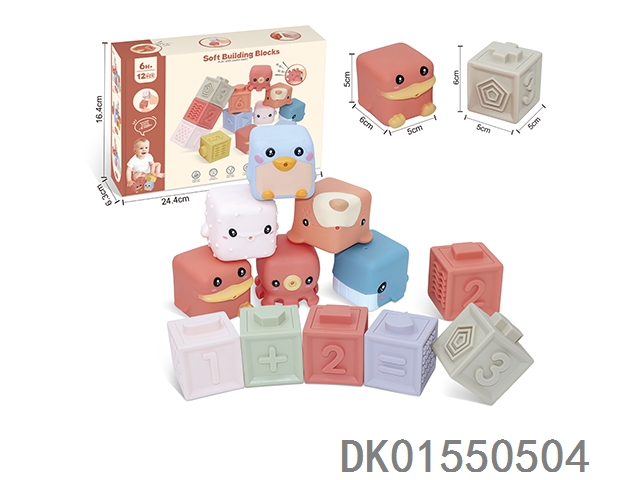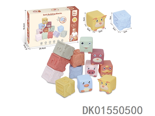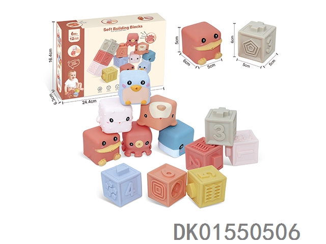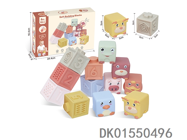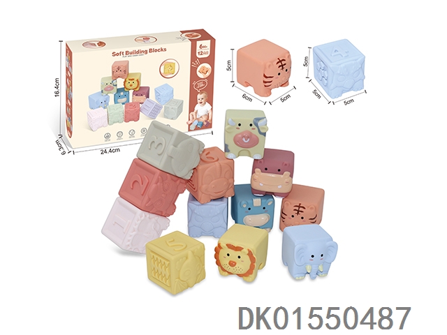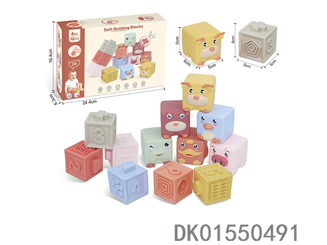 Soft rubber animal zodiac numbers and -1234 building blocks 12pcs