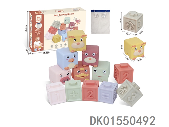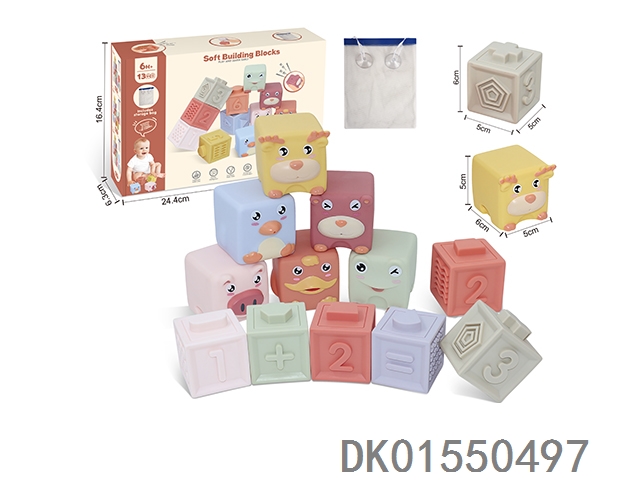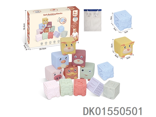 Soft rubber animal zodiac numbers 1-6 building blocks 13pcs (with storage bag included)