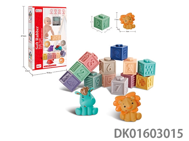 Soft rubber (vinyl) infant puzzle cognitive building blocks and small dinosaur combination