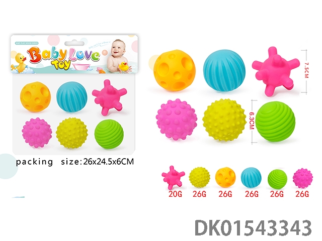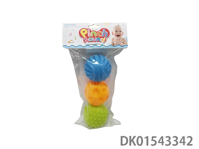 Silicone baby massage ball, three pieces per bag, with bb whistle, pinch ball