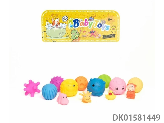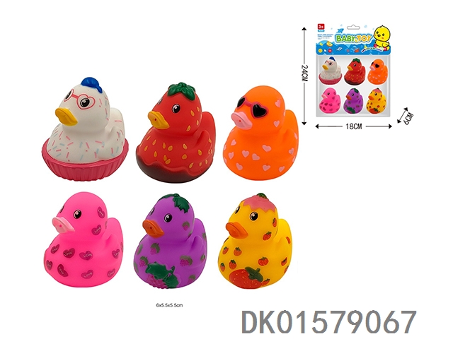 Playing with water toys, pinching and making noise, with 6 small ducks in a bag