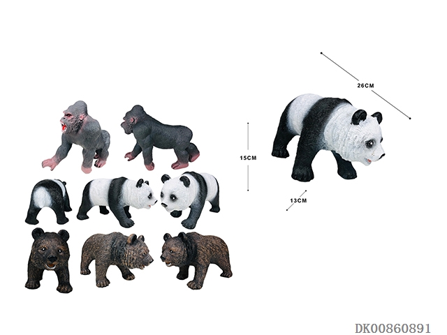 Medium and small pandas, brown bears, orangutans