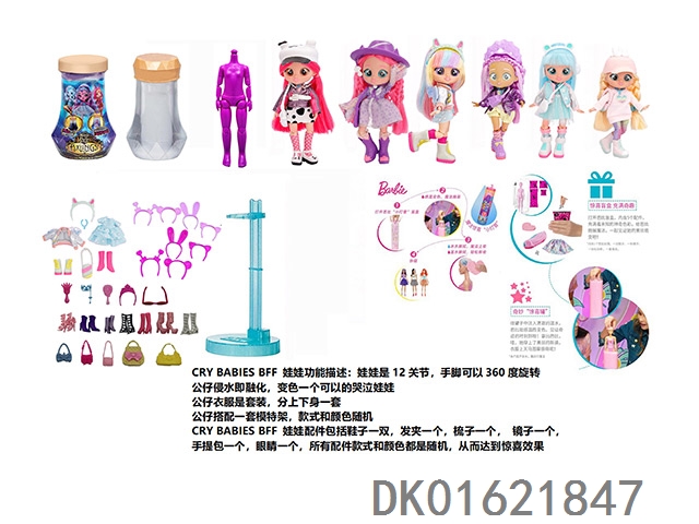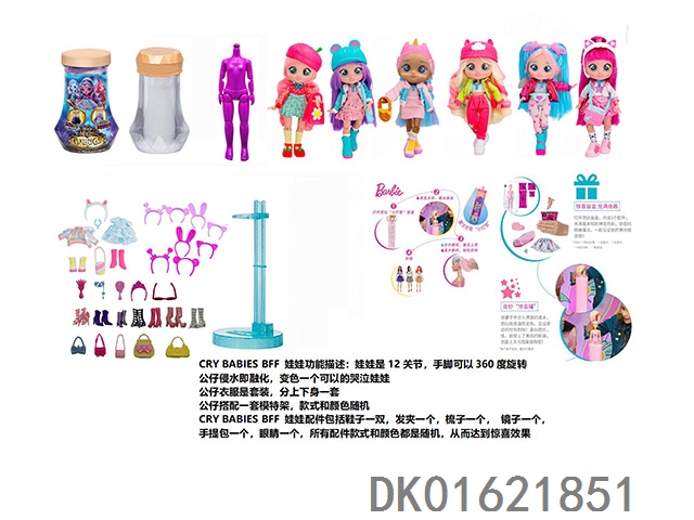 Water soluble color changing series cry babys bff11.5 inch 11 joint real crying barbie doll with 5 surprise accessories hair clip. a model rack with 6 mixed designs