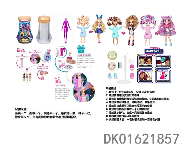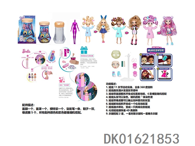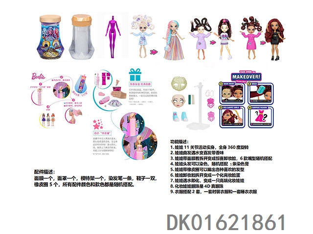 Water soluble color changing series fail.fix. 9-inch 11 joint solid 3d real eye change face makeup barbie hair strap with 6 different surprise accessories. one piece of clothing, mixed with three different styles