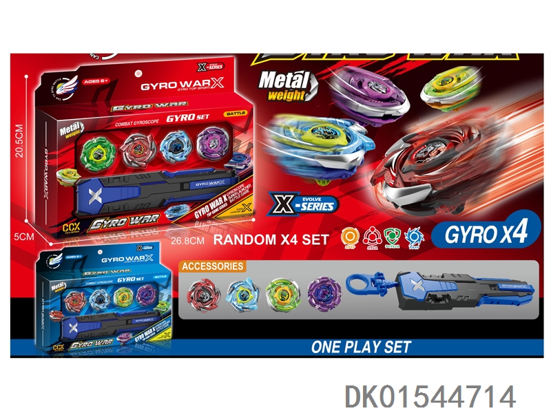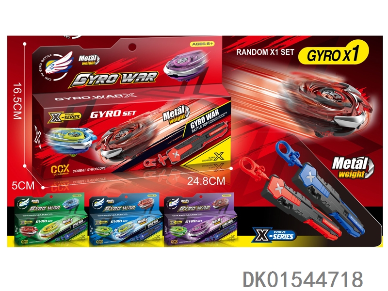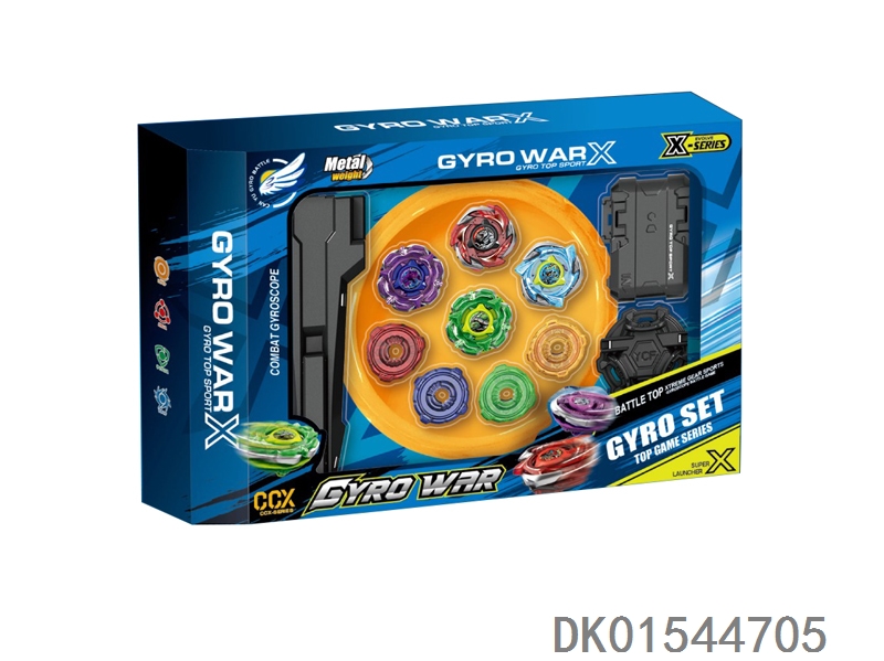 Alloy gyro set with three gyroscopes, dual emitters, handle, and gyro disc