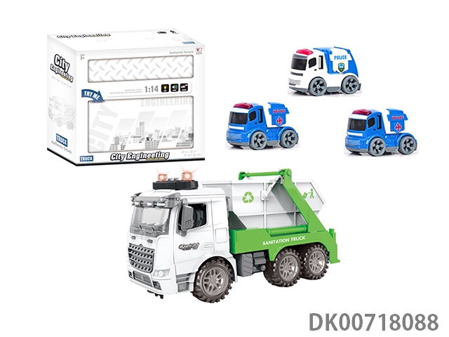 1: 14 Inertial sanitation vehicle box (with light music) pack 3 ag13 batteries
