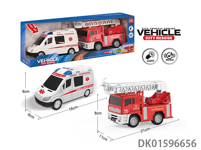 Alloy off-road dual inertia fire truck (rescue truck and fire truck) 6 pieces/box