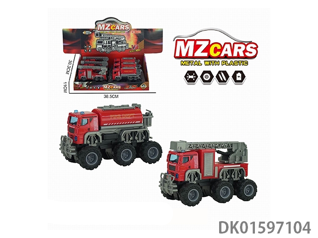 Alloy off-road dual inertia fire truck (sprinkler truck and ladder truck) 6 pieces/box