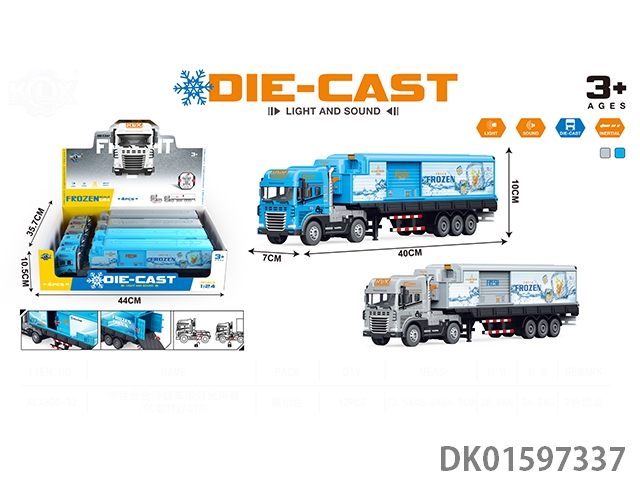 Inertial alloy cold chain car with lighting and sound (including 3 ag13 batteries) 4pcs/box