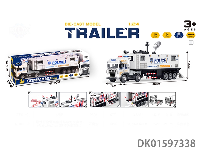 Inertial alloy police command vehicle with lights and sound (including 3 ag13 batteries) (equipped with receiver accessories) 4pcs/box