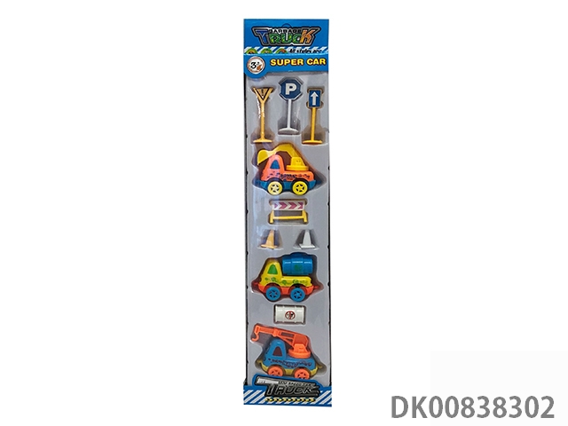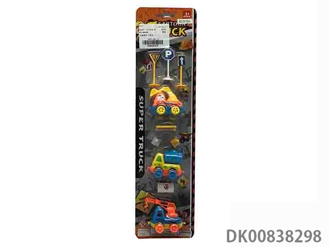 Cartoon inertial engineering vehicle 3 pieces 7 accessories