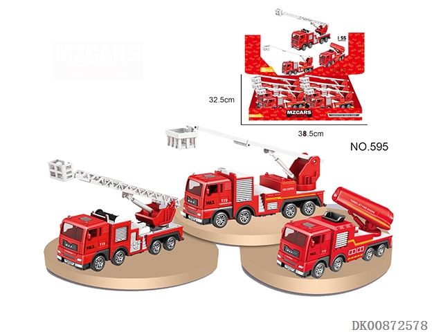 Inertia alloy fire truck, 3 models, mixed loading, 8pcs/box