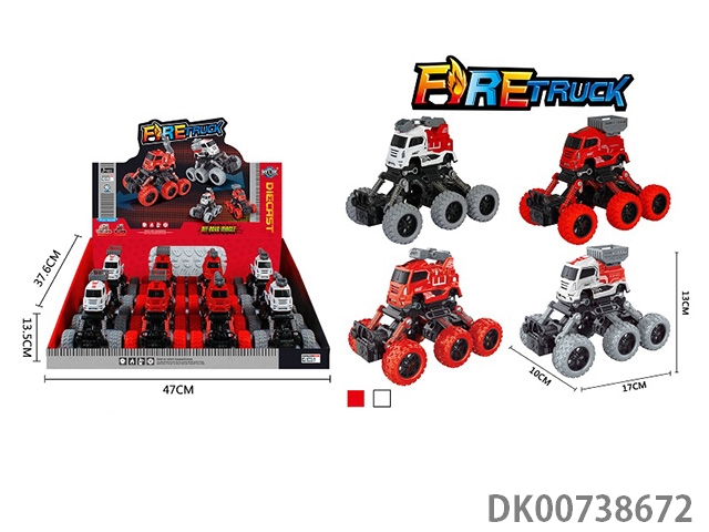 6-Wheel 4-drive recoil alloy climbing fire truck 8pcs/box