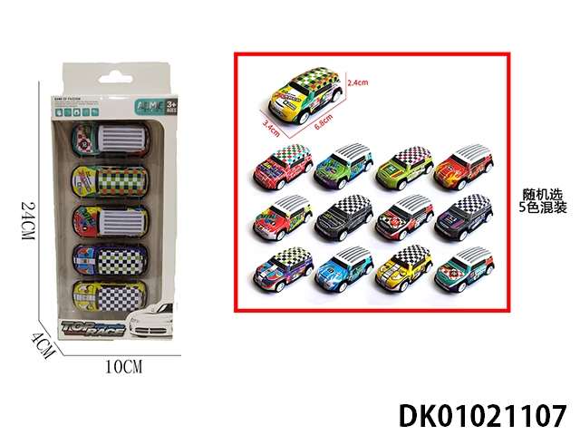 5 Pieces of metal sheet racing return cars 1:64