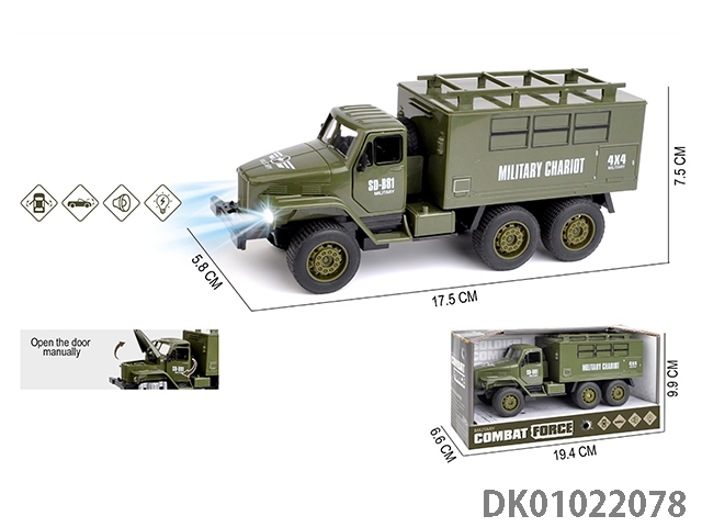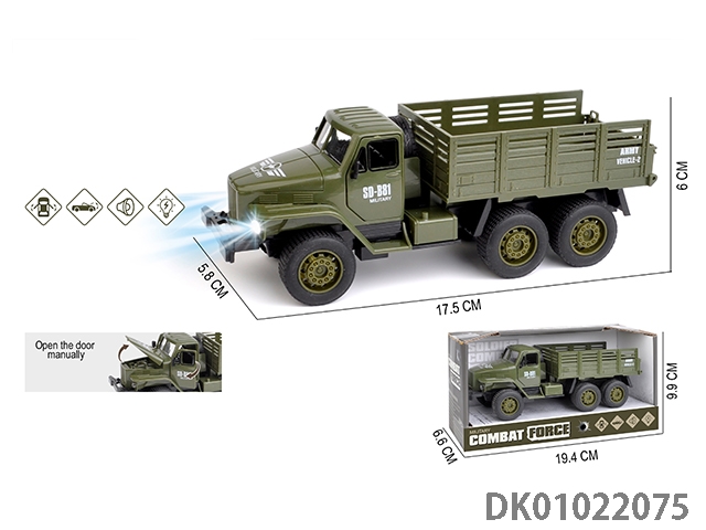 Military flat bottom rebound simulation small truck 3 door acousto-optic toy car (including lr44 * 3)