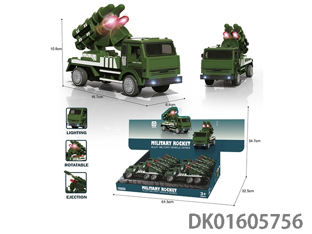 Military alloy car with lighting, music, and regenerative power, set of 6 pieces/box