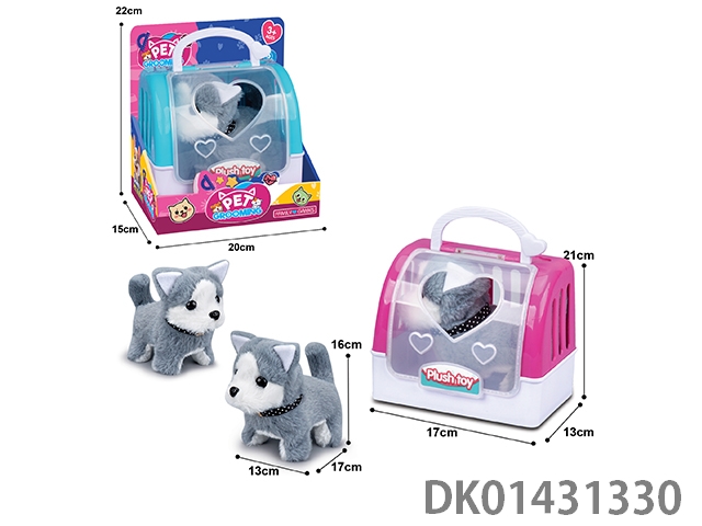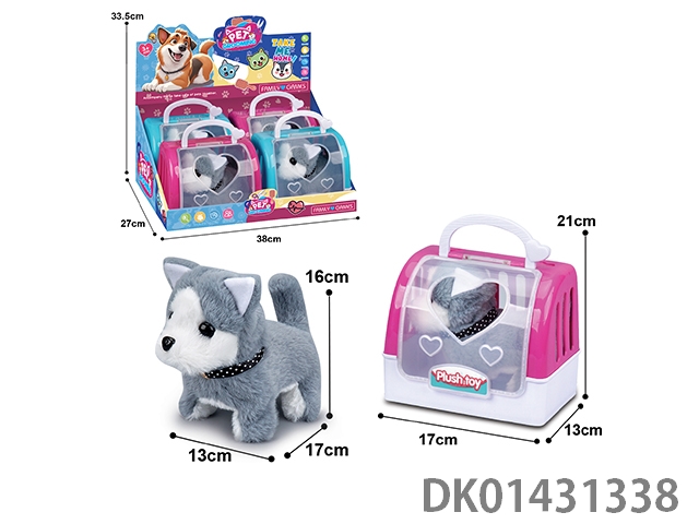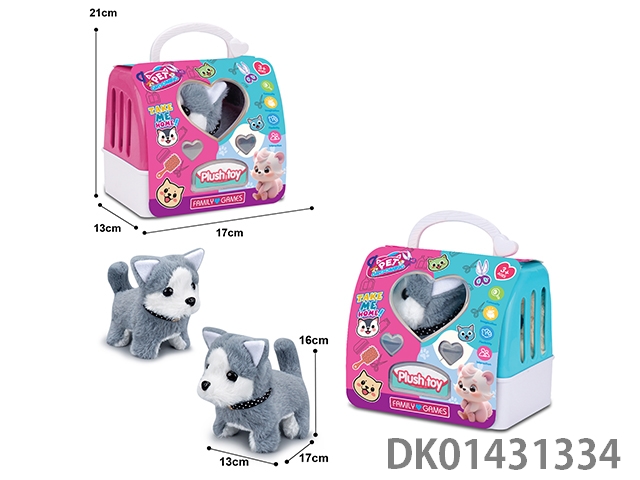 Electric plush husky (one color) and 2-color portable cage, 4pcs/box