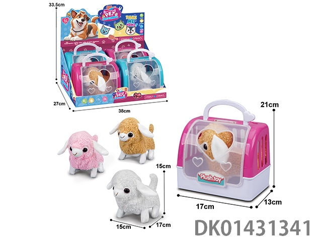 Electric plush sheep (three mixed models) and 2-color portable cage, 4pcs/box