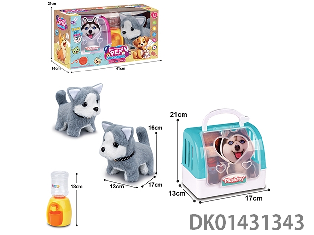 Electric plush husky (single color) and 2-color portable cage and water dispenser