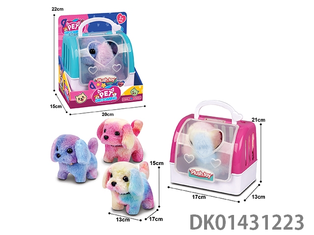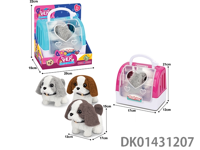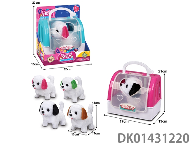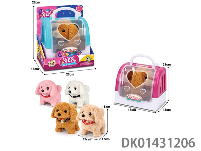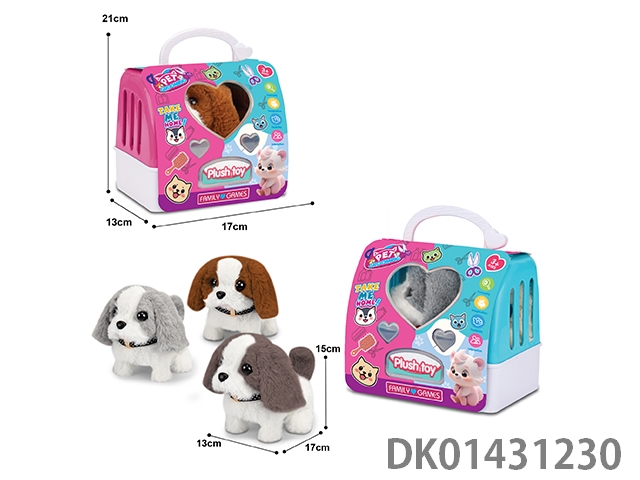 Electric plush dog and two-color hand-held cage mixed with four-color dog