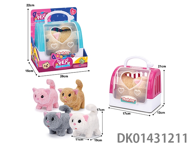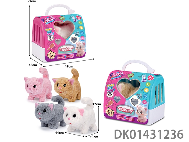 Electric plush cat and 2-color portable cage, mixed with 4-color cat