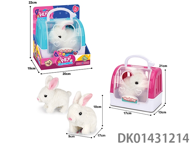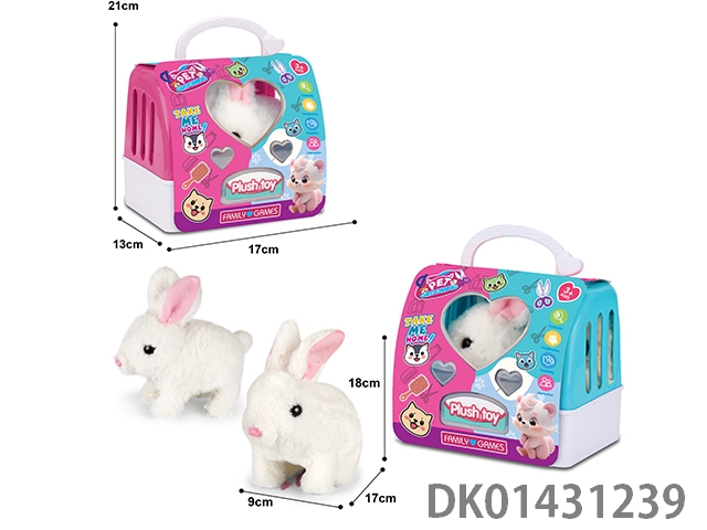 Electric plush long haired white rabbit and 2-color hand-held cage