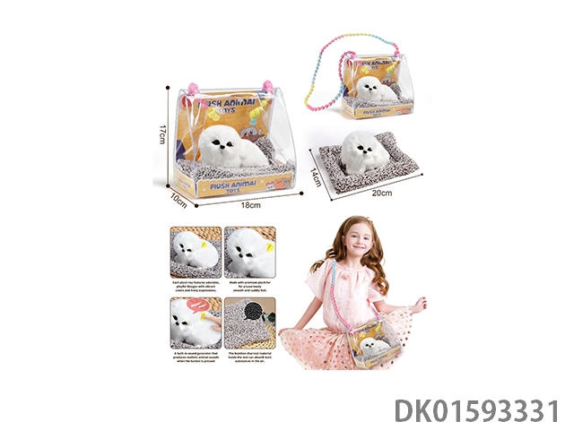 Playing house, plush pet animal toys, PVC bags, shoulder bags, activated carbon home, car ornaments, cute little dog Samoyed (with sound)