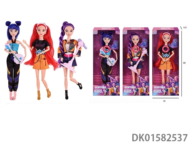 11.5-inch physical 11 joint K-POP witch hunting group Lumi Mira Zoe doll with colorful lighting music theme song and instrument accessories (3 mixed styles)