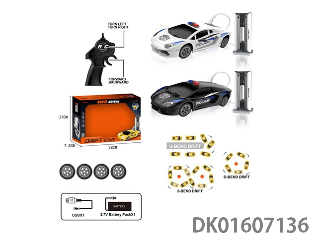 2.4G four-wheel drive remote control drifting police car with lights and equipped with charging station and power package