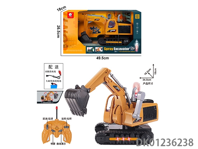 Spray light digging car, engineering yellow monochrome, 1:10 (including) body 7.4v rechargeable lithium battery, usb cable, water bottle, remote control (2aa is not included) 6-way