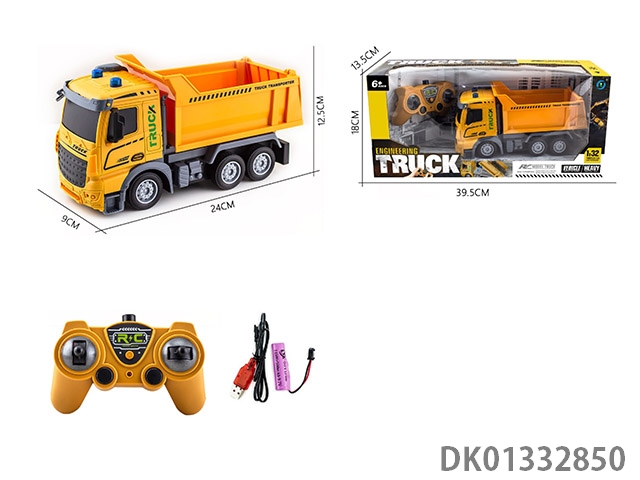 Remote control four-way 1 to 32 short head engineering dump with light remote control car (electric package)