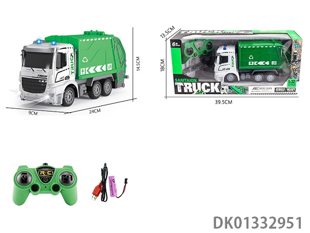 Remote control seven way 1:32 short head sanitation garbage truck with music 2.4g remote control car (including electricity)
