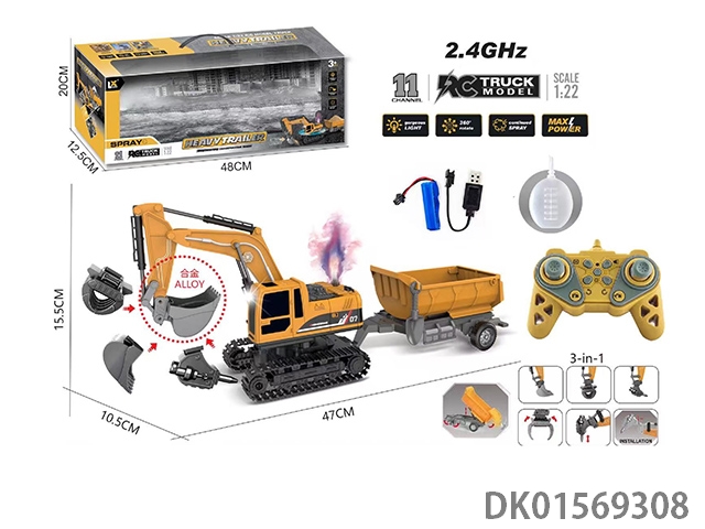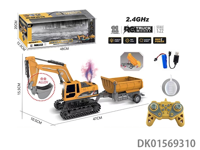 1: 22 11 Way remote control light sound spray excavator carriage 2.4ghz