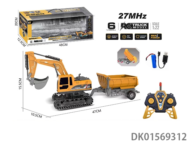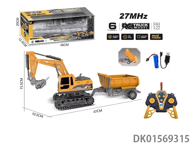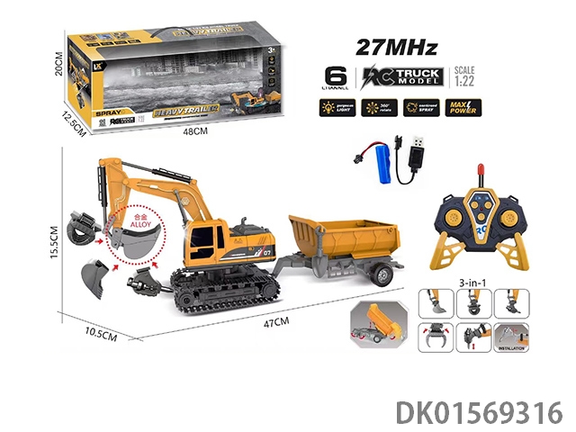 1: 22 Six way remote control light excavator trailer 27mhz