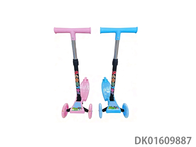 Three wheeled scooter with pu large wheel strip light, foldable and adjustable height