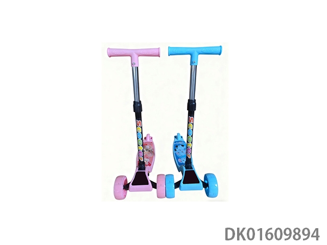 Three wheeled scooter with pu wheel strip light foldable and adjustable height