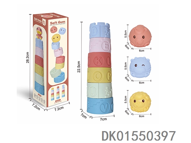 Soft rubber animal stacking tower (mixed) 7pcs