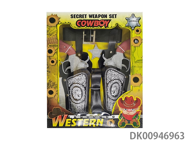 Silver 2 gun western cowboy holster gun pack 3 ag13 button batteries