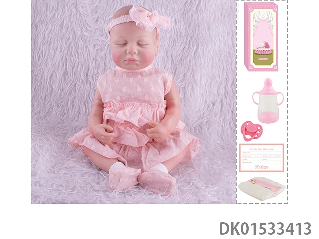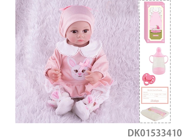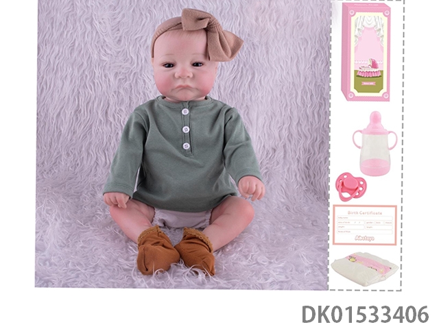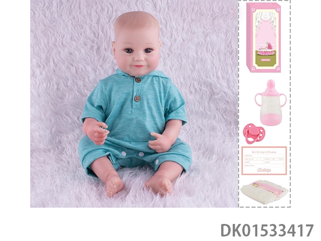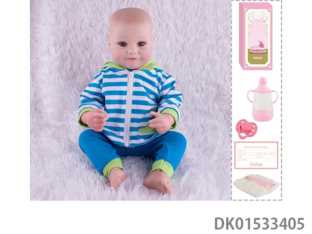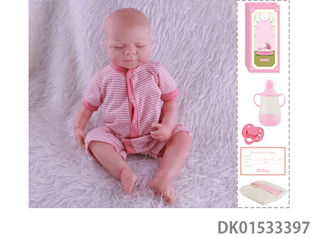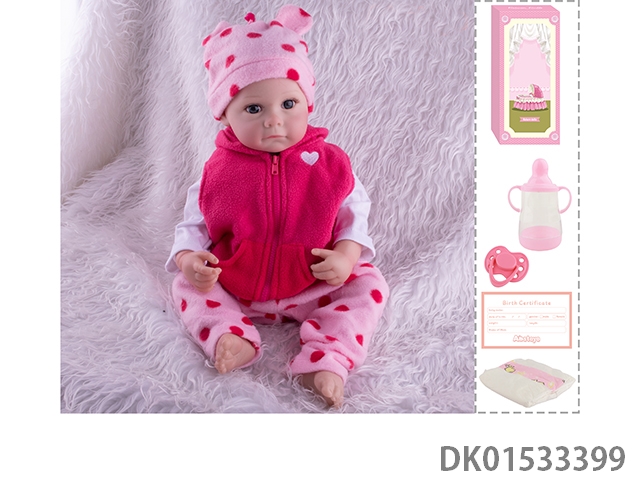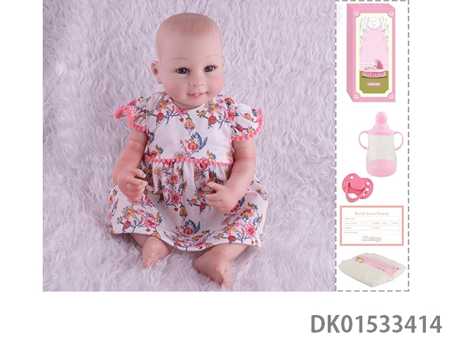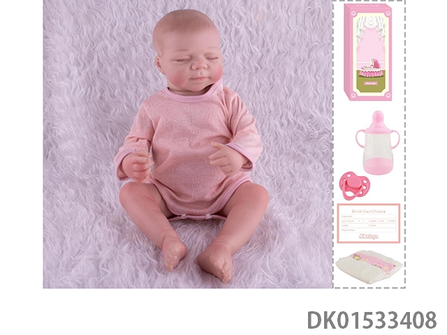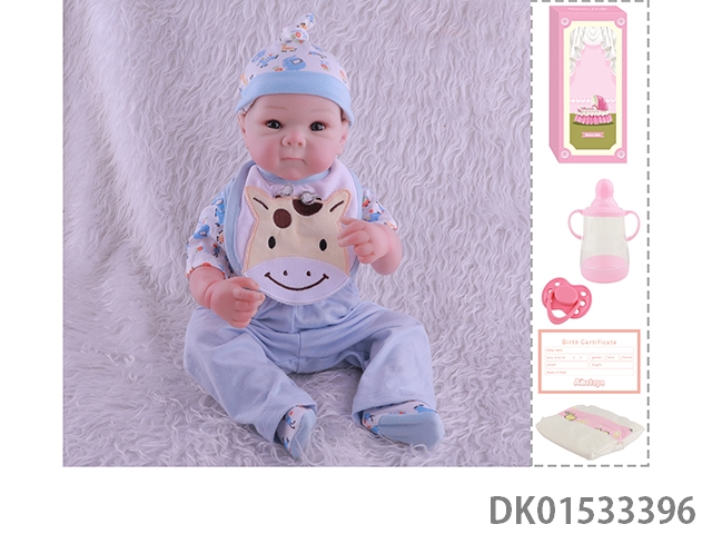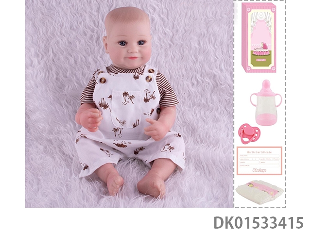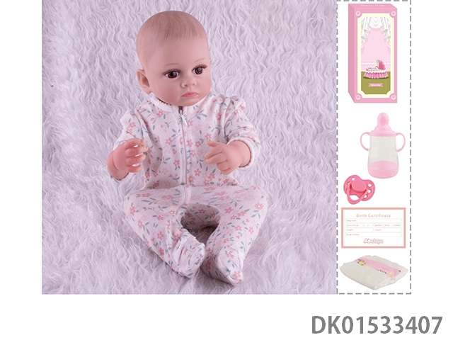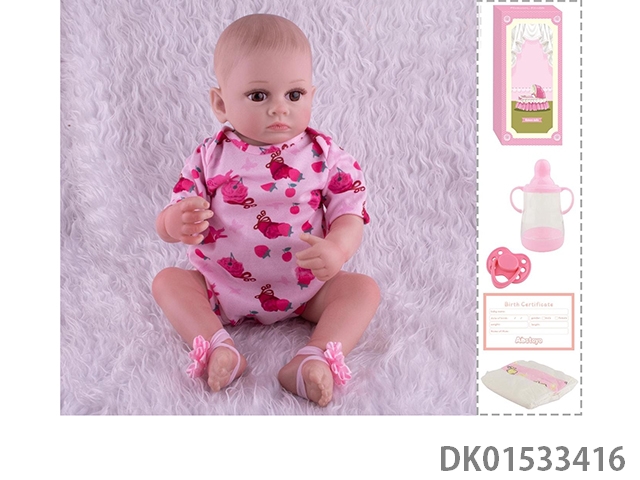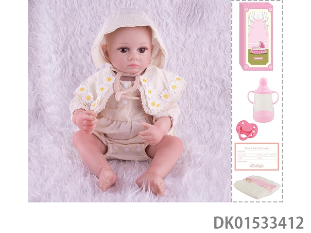 48Cm reborn doll soft rubber high simulation baby doll (hand drawn hair, advanced color painting) with bottle, magnetic nipper, diaper, birth card