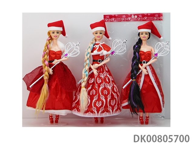 11.5 9-Joint solid body with walking stick christmas long hair princess 3 mixed