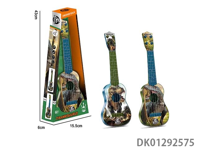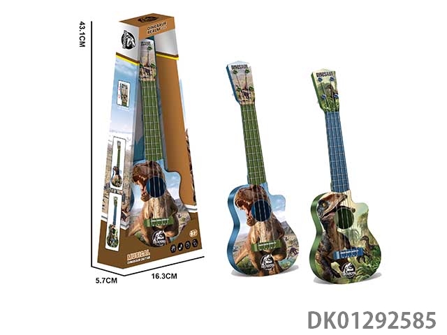 Simulated dinosaur plucking guitar